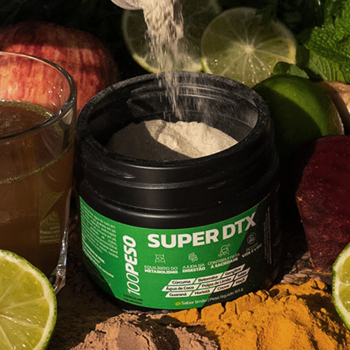 SUPER DTX 100PESO é o suplemento em pó aliado para quem busca por mais saúde, bem-estar e um metabolismo mais equilibrado. Com ingredientes naturais selecionados e fórmula desenvolvida por especialistas com alta tecnologia, possui 14 ingredientes e é fonte de vitaminas.
